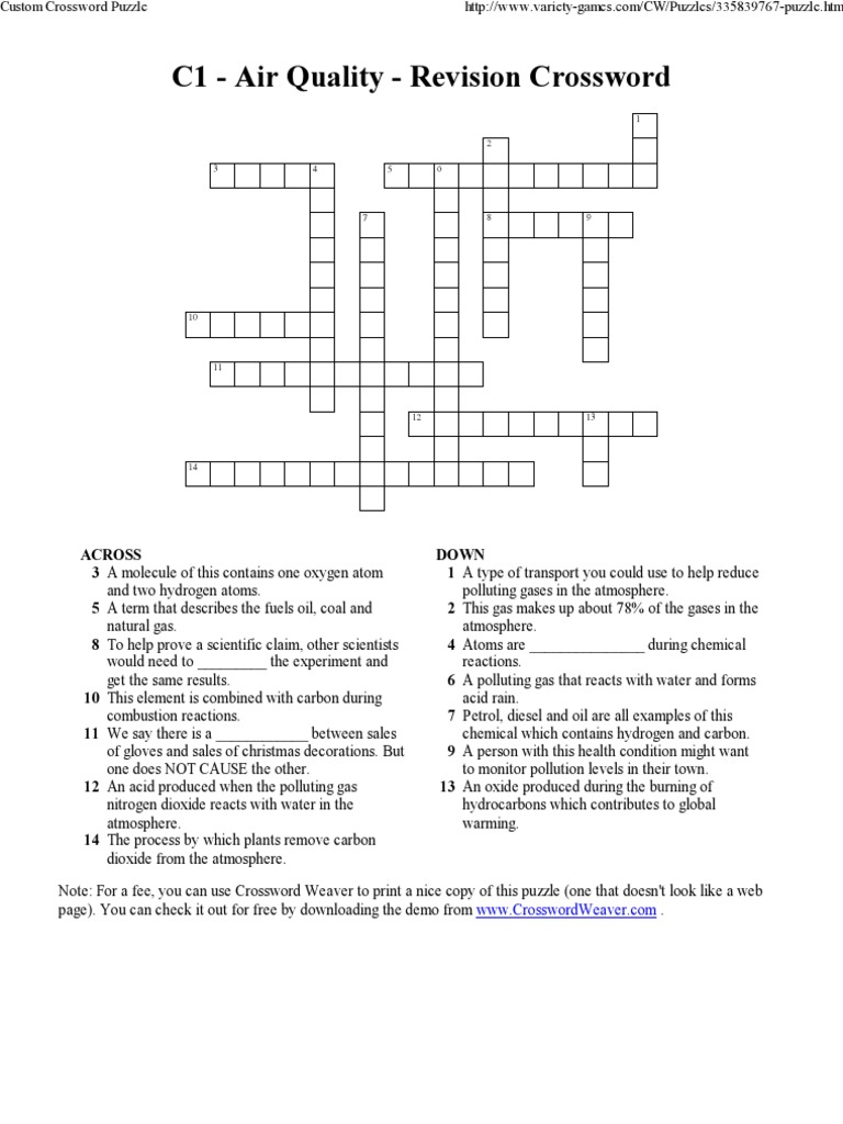 Custom Crossword Puzzle Natural Gas Combustion