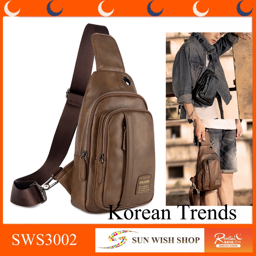 Korean Men S Casual Waterproof Pu Messenger Bag Backpack Shoulder Sling Bag Shopee Philippines